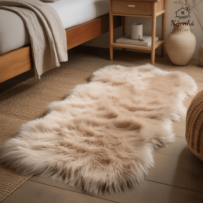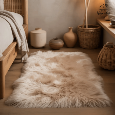 Ngoài ra, thảm lông còn có khả năng giữ nhiệt tốt, giúp không gian phòng ngủ luôn ấm cúng. Đây là giải pháp đơn giản nhưng hiệu quả để nâng cao trải nghiệm sinh hoạt hằng ngày mà không cần đầu tư quá nhiều chi phí.